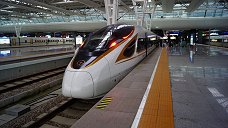 中国鉄路の高速列車網で走り回る、日本や欧州の車両をパクリいや、モデルに開発した車両。中国は最初から標準軌なので、在来車両と高速車両が同じ線路を走る。 (2019.5, 上海駅)