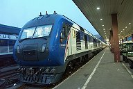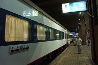 客車列車ながら130km/hを実現する高速夜行列車。日に5往復もノンストップで北京と上海を結んでおり、そのほとんどの車両がクッションの二段寝台である軟臥を連結している。夕食の弁当サービス、2車両に一人ずつのアテンダント、など中国としては豪華列車である。 (2004.8, 上海駅)