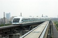 上海浦東空港と市内を結ぶ、世界初の実用リニアモーターカー。最高速度430km/hで、バスで1時間かかる距離をたった8分で結ぶ。 (2004.8, 上海, 龍陽路駅)