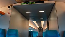 室内では最高速度を表示しているが、最高速度430km/hを表示するのは20秒ほど。 (2019.5, 車両内)