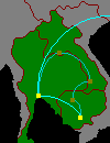 パスポートと申請書類を渡してから、数分でパスポートにビザが張られて返ってくる。これでUS$20(2,000円)とは実に高い。入国審査、税関と進むが、本当に小さな空港だ。出てすぐのところにタクシーのカウンターがあり、歩き方どおりUS$9(900円)だった。たった20分にしては意外と高い気がする。ベトナムのハノイでは一時間乗ってUS$10だったのに。どうやら、ベトナムの方が貧しい国のようだ。